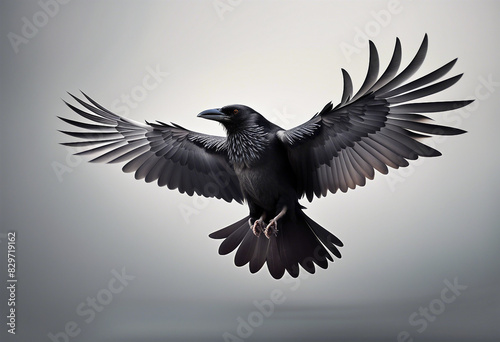 © abu, Naklejka premium crow with wings open , isolated white background