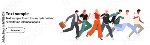 Naklejka premium Crowd of business people running fast. Men, women running, rushing, aspiring...