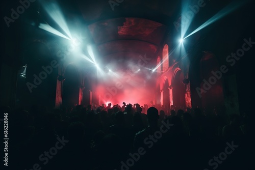 Fototapeta premium Crowd of people dancing at a nightclub concert. ai generative art.