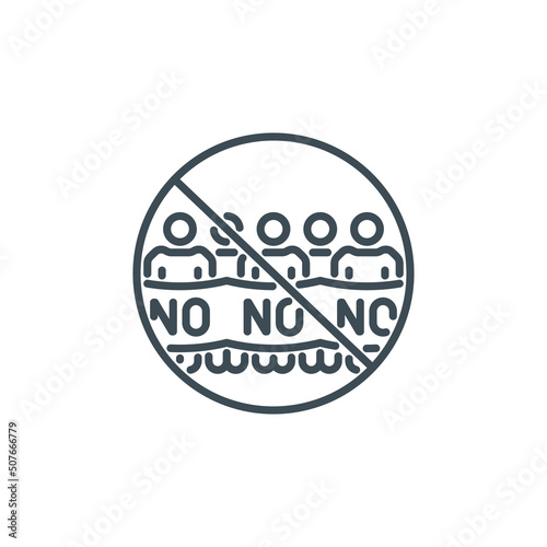Naklejka premium crowd of protesting activists at demonstrate single line icon isolated on white. Perfect outline symbol strike of group people against the war. rebels and insurgents element with editable Stroke line
