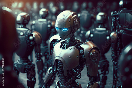 Naklejka premium Crowd of robots. Created with Generative AI technology.