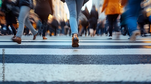 Fototapeta premium Crowded City Crosswalk with People Walking, Urban Street Life and Motion Blur Effect