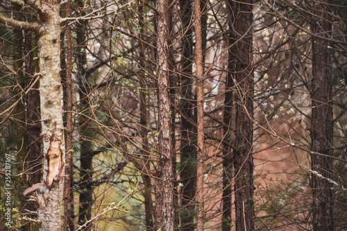 © Julianne, Fototapeta premium Crowded forest covered in small trees