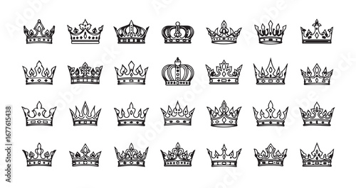 © Smithstar, Fototapeta premium Crown line art icon bundle illustration