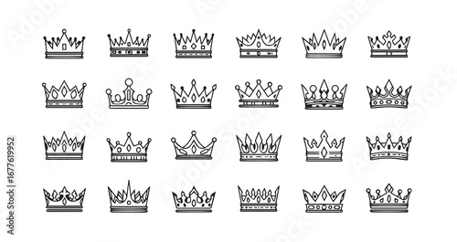 © Smithstar, Fototapeta premium Crown line art icon bundle illustration
