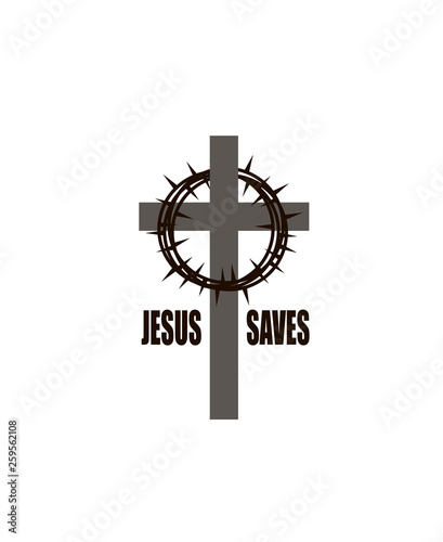 © Alexkava, Obraz premium crown of thorns and cross icon isolated on white background
