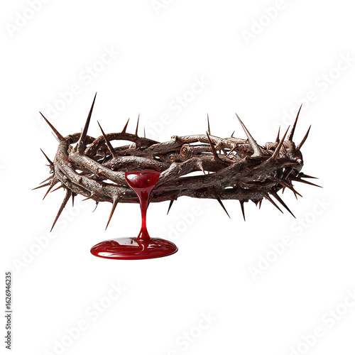 © PNG, Vector & Video, Obraz premium Crown of Thorns with Red Drops Dripping on Transparent Background