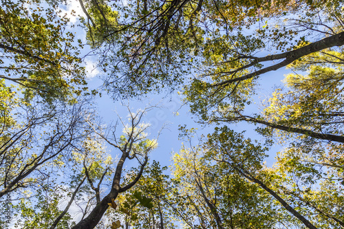 © travelview, Obraz premium Crown trees and pine against sky