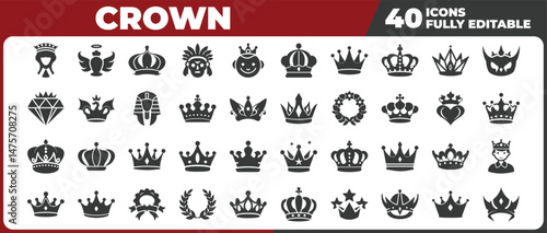 © AshrafStore, Fototapeta premium Crown vector icons set various designs royal symbol collection royalty emblems
