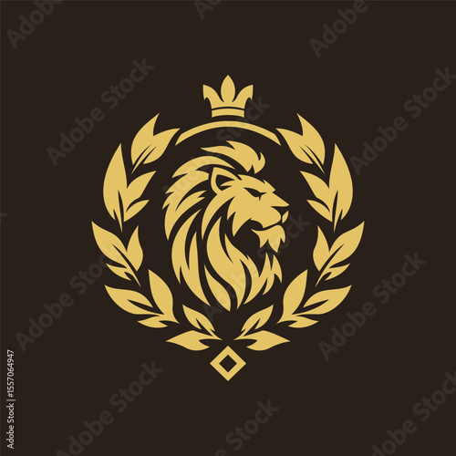 Obraz premium Crowned Lion Leaf Circle Silhouette Logo