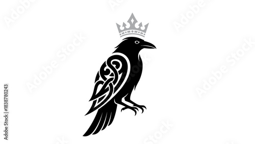 © Alienmarsh, Fototapeta premium Crowned Raven Logo with Celtic Knot Design