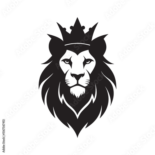 © Nahida, Obraz premium Crowned Royal Lion Head Silhouette