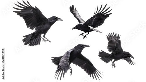 © baymissal, Fototapeta premium crows flying on white background