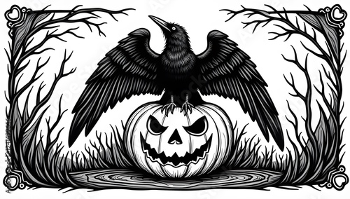 Obraz premium Crows on Halloween Pumpkins Vintage Art