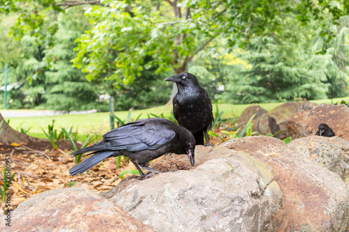 Obraz premium Crows on rocks in the park