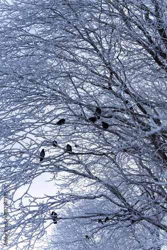 © Marina, Fototapeta premium Crows On Snow Covered Tree Branches In Winter