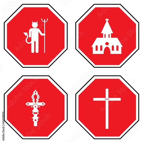 © Atlantis, Obraz premium Croyances dans 4 panneaux Stop