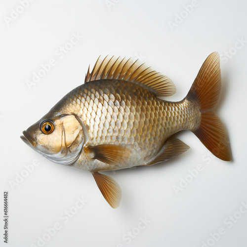 © Grafvision, Fototapeta premium Crucian crap fish on white background. 3D illustration digital art design, generative AI