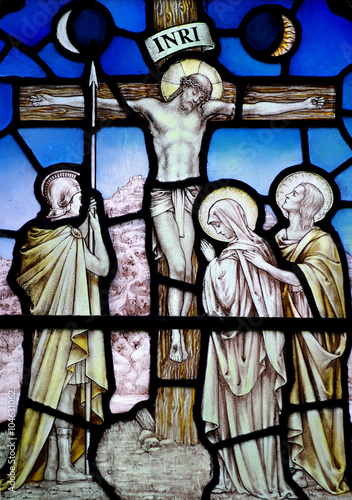 © Howgill, Fototapeta premium Crucifixion of Jesus Christ (Good Friday) in stained glass