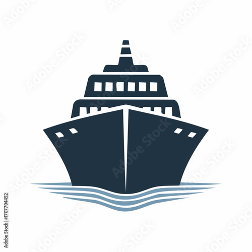 Obraz premium Cruise Ship Front View on Blue Waves