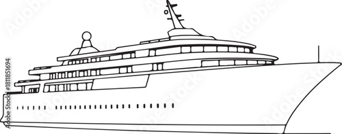 © Tonix Pix, Obraz premium Cruise Ship Hand-drawn Sketch Drawing Vector Illustration, Line Linear Symbol Engraving Coloring Book, Black and White Isolated