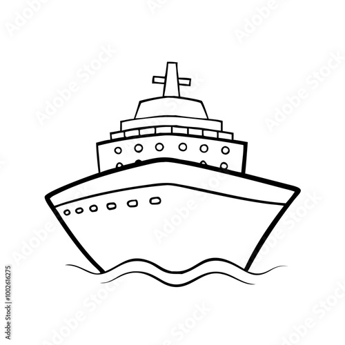 Obraz premium Cruise ship, line icon, black and white, travel symbol