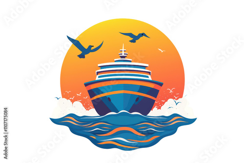 © JK_kyoto, Fototapeta premium Cruise ship sailing on vibrant ocean waves with seagulls flying above. isolated on transparent background