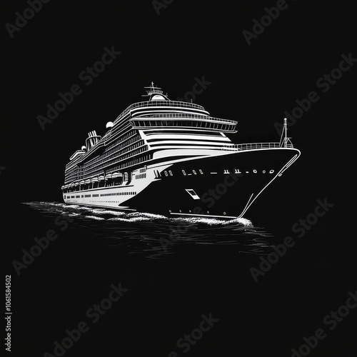 Obraz premium Cruise Ship Silhouette on a Black Background: A Nautical Masterpiece