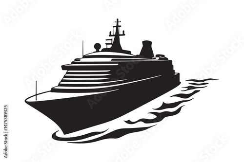 © Sadek, Obraz premium Cruise Ship Silhouette on Ocean Waves Marine Travel Vector Icon
