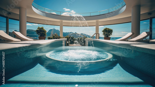 Fototapeta premium Cruise Ship Spa Marble Accents Tranquil Pools Luxurious Loungers Ocean Views