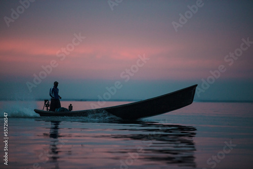 © Fredy G. Wollenstein, Obraz premium Cruising sunset canoe