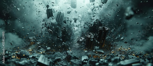 Fototapeta premium Crumbling Ruins 8K Dark Teal Chaos Destruction Background