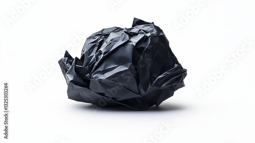 Fototapeta premium Crumpled black paper on a white background