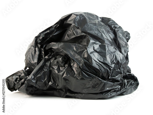 Fototapeta premium Crumpled black trash bag on a white background