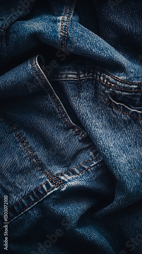 © ayam, Naklejka premium Crumpled Blue Denim Texture Backdrop Close-Up