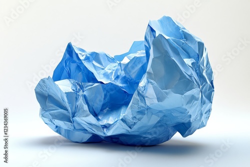 Obraz premium Crumpled blue paper artwork displayed against a minimalist white background...