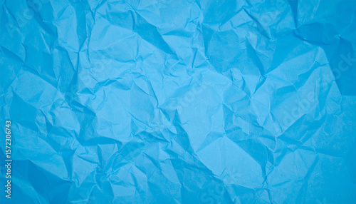 © soyibakter, Obraz premium Crumpled blue paper texture background