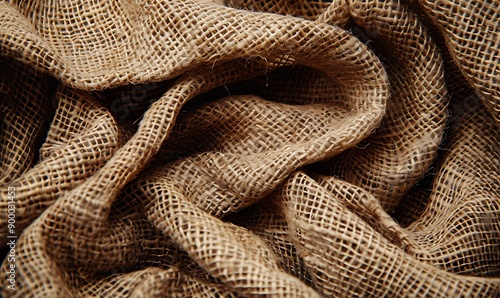 © Md Mojammel, Fototapeta premium Crumpled brown fabric as background, Brown burlap cloth background top view