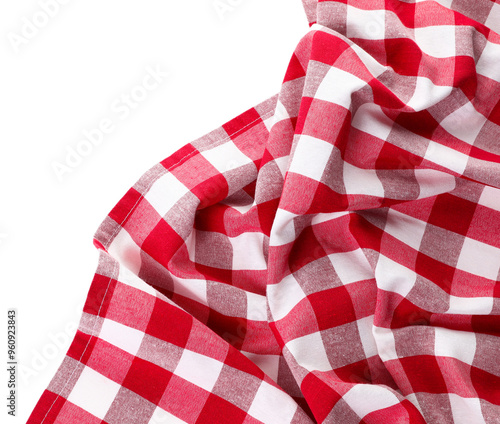 © New Africa, Fototapeta premium Crumpled checkered tablecloth isolated on white, top view