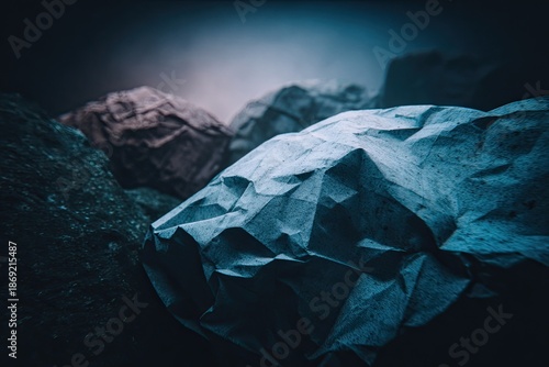 Obraz premium Crumpled paper balls bathed in dark, moody lighting