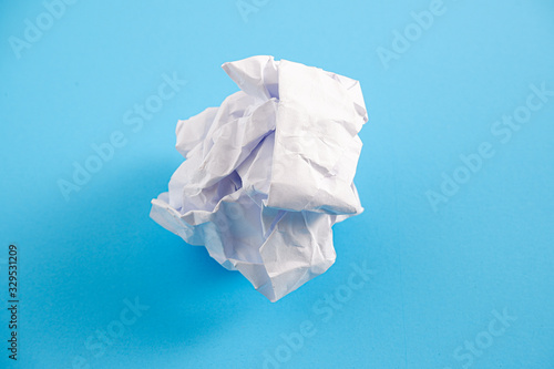 Obraz premium Crumpled paper balls on a blue background