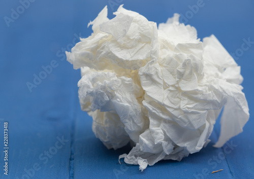 Obraz premium Crumpled paper on blue background