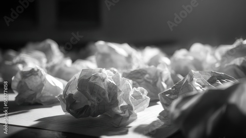 © Sukses, Fototapeta premium Crumpled papers in grayscale