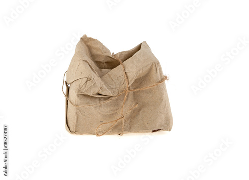 © Bohdan, Obraz premium crumpled parcel postmarked destroyed, isolated on a white background