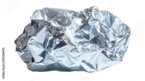 Fototapeta premium Crumpled piece of foil reflecting light, creating a textured and shiny surface, isolated on a transparent background, ready for easy integration into designs