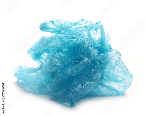 Fototapeta premium Crumpled plastic blue garbage roll ball isolated on white background