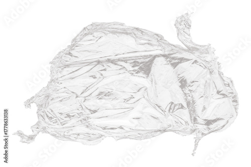 Fototapeta premium Crumpled plastic wrap isolated on transparent background, creating abstract...