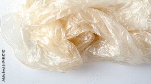 © studio, Fototapeta premium Crumpled, semi-transparent plastic bag on white