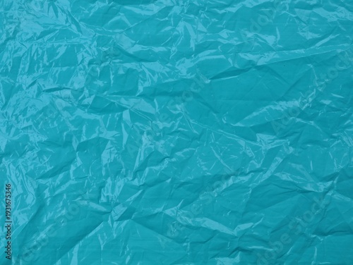 Fototapeta premium Crumpled teal blue plastic texture background. Perfect for creative backgrounds, waste management concepts, or industrial textures