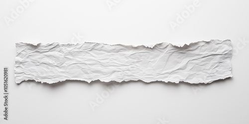 © IBEX.Media, Obraz premium Crumpled torn strip of white paper with jagged edges, isolated on a plain light background, perfect for abstract creative designs or textured placeholders